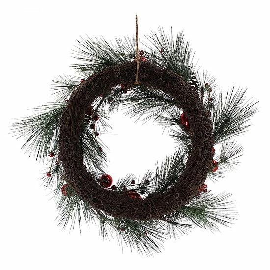 You can’t go wrong with this festive St. Nicholas Square Artificial Flocked Pinecone Pine Needle Ornament Wreath.