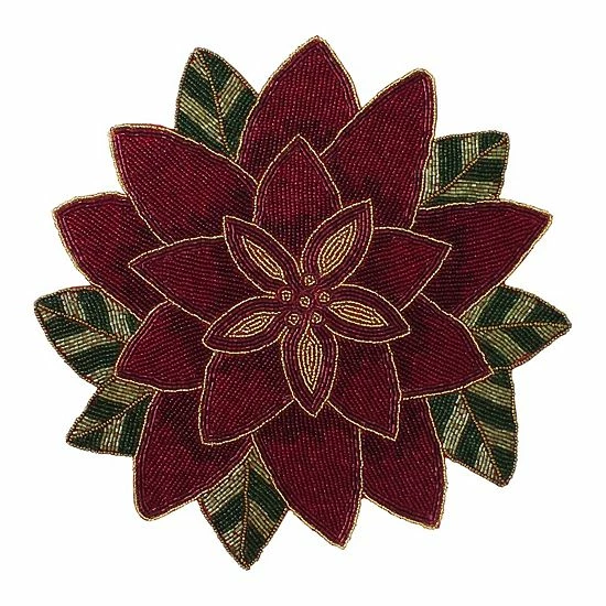 Get your home holiday ready with this St. Nicholas Square Beaded Poinsettia placemat.