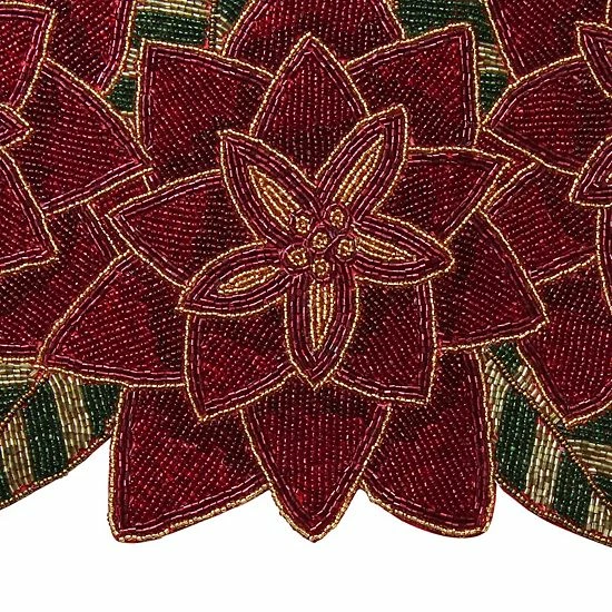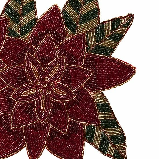 Get your home holiday ready with this St. Nicholas Square Beaded Poinsettia table runner.