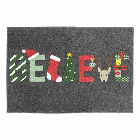 Bring a festive look to your bathroom with this St. Nicholas Square® Believe Rug.