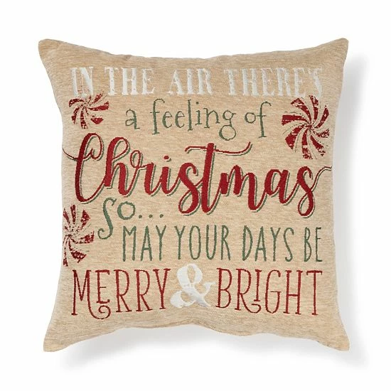 Create a festive seasonal scene with this St. Nicholas Square Christmas Words Holiday Tapestry Throw Pillow.