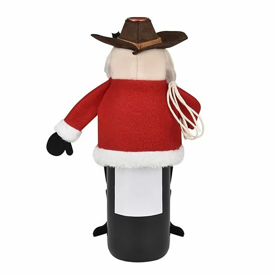 Get your home holiday ready with this St. Nicholas Square Cowboy Santa wine bottle cover.