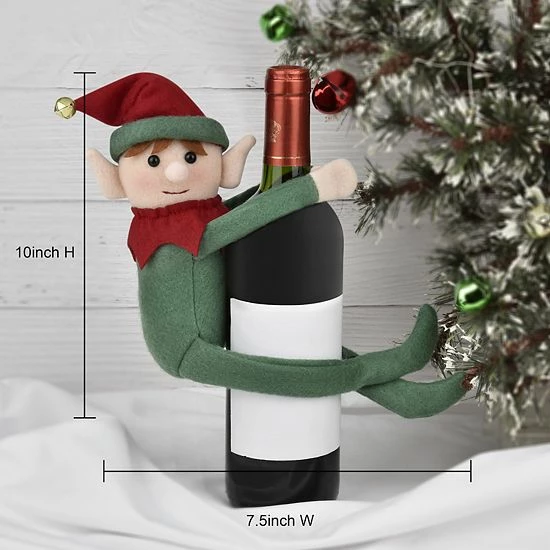 Get your home holiday ready with this St. Nicholas Square Elf wine bottle cover.
