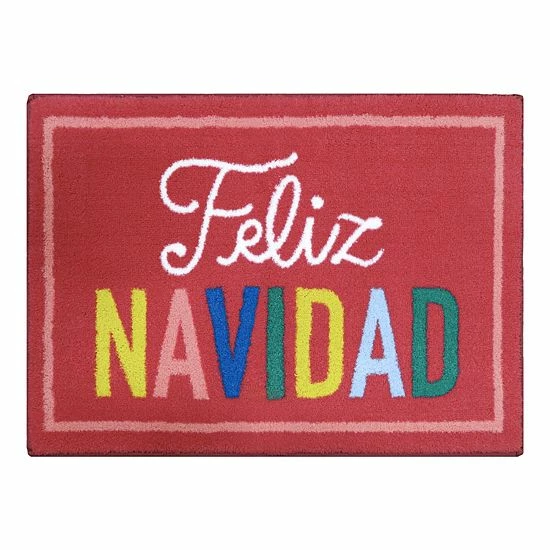Bring a festive look to your bathroom with this St. Nicholas Square® Feliz Navidad Rug.