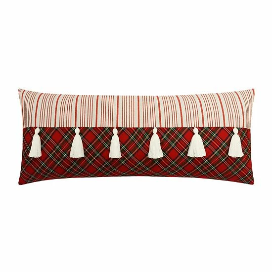 Create a festive feeling with this seasonally stylish St. Nicholas Square® Plaid & Stripe Throw Pillow.