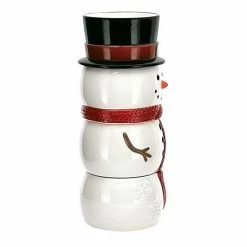 - Stackable mugs create a fun snowman display